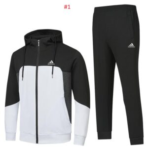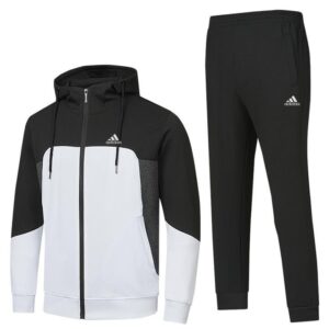 סט ג’קט וחולצה של המותג אדידס. חולצה עם שרוולים ארוכים ולוגו המותג בחזית, מכנס ארוך בשילוב לוגו המותג עם קשירת חוט וכיסים צידיים.