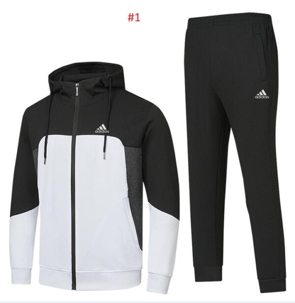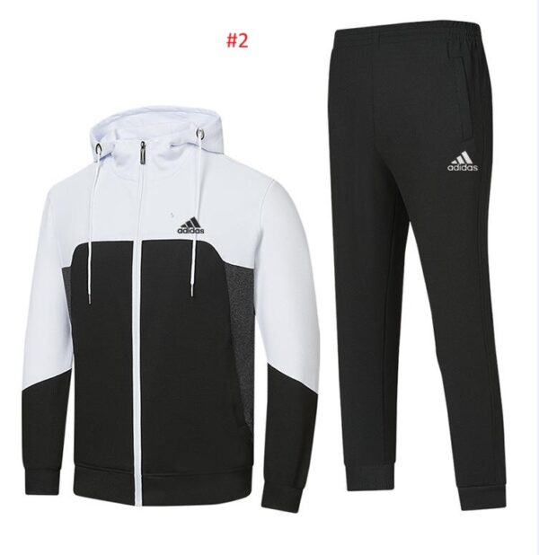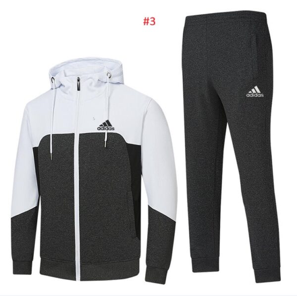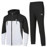 סט ג’קט וחולצה ספורטיביים של המותג אדידס. חולצה עם שרוולים ארוכים, כיסים צידיים ולוגו המותג בחזית, מכנס ארוך בשילוב לוגו המותג עם קשירת חוט וכיסים צידיים.